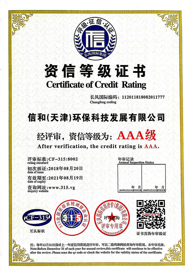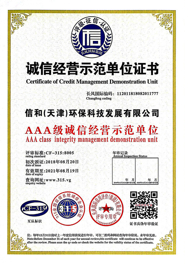 “質量就是生命”。信和重質量、守信用,被中國誠信品牌萬里行推薦“誠信示范單位”、“AAA資信等級”、“AAA級誠信經營示范單位”、“誠信經理人榮譽證書”、“誠信企業家榮譽證書”、“中國產品質量放心達標企業”、“誠信品牌聯盟會員單位”、“中國質量誠信AAA級品牌企業”、“中國百強優秀企業”、“節能環保推廣產品”、“全國科技創新企業”等榮譽稱號。